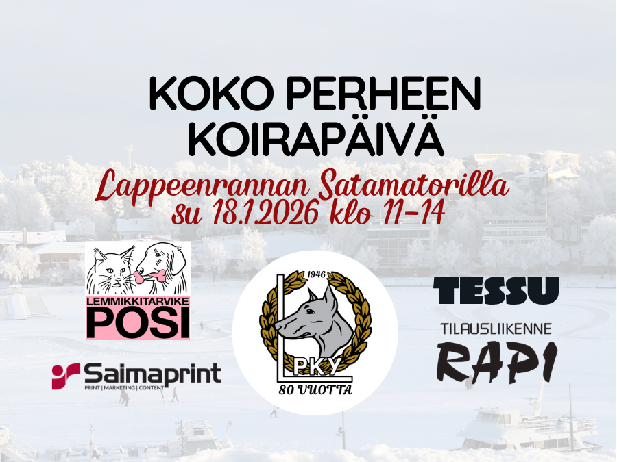 Koko perheen koirapäivä su 18.1.2026 Lappeenrannan Satamatorilla