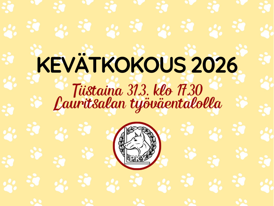 Tervetuloa Lappeenrannan Palveluskoirayhdistyksen sääntömääräiseen kevätkokoukseen tiistaina 31.3.2026 klo 17.30 alkaen. Kokous pidetään Lauritsalan työväentalolla (Hakalinkatu 1, Lappeenranta). Kokouksessa käsitellään sääntöjen 12§ mukaiset asiat.