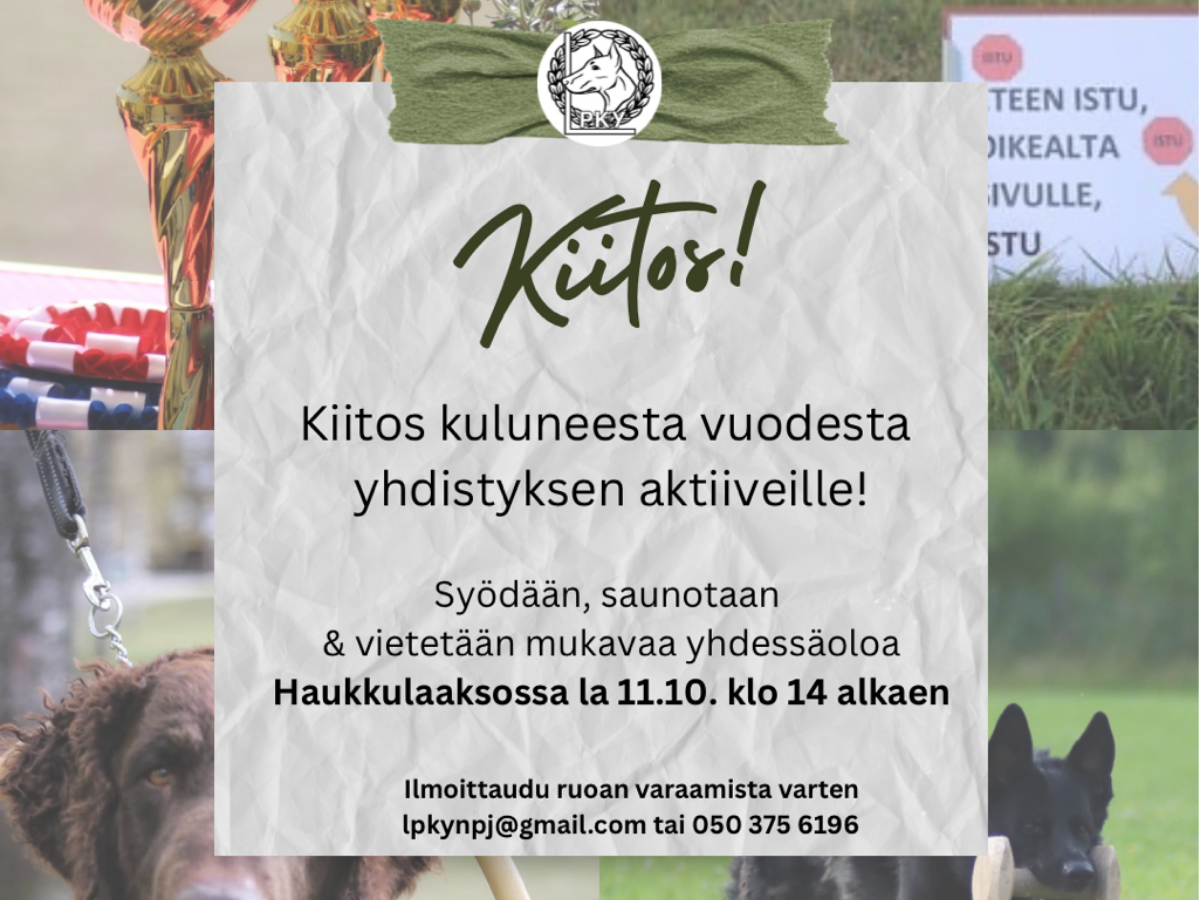 Järjestämme kaikille vuoden 2025 aikana yhdistyksen toiminnoissa ja tapahtumissa talkoileille yhteisen kiitostilaisuuden Haukkiksessa lauantaina 11.10. klo 14 alkaen.